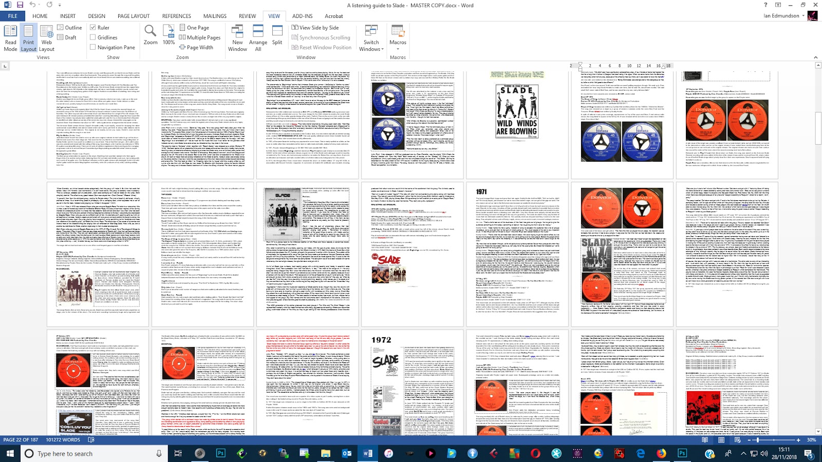 The Slade book is going slowly at present - real life is getting in the way a little bit - but I intend to do some more serious writing sessions shortly. You will be pleased to know that I have finally steeled myself to do it and have now managed to write about their You boyz make big noize album, which was poorly received by the world at the time - despite there being a few really good tunes on it. The book is shaping up nicely and is not a long way from being complete. Here's a teaser image.... Click on it to see it 'in big'. Good, eh?