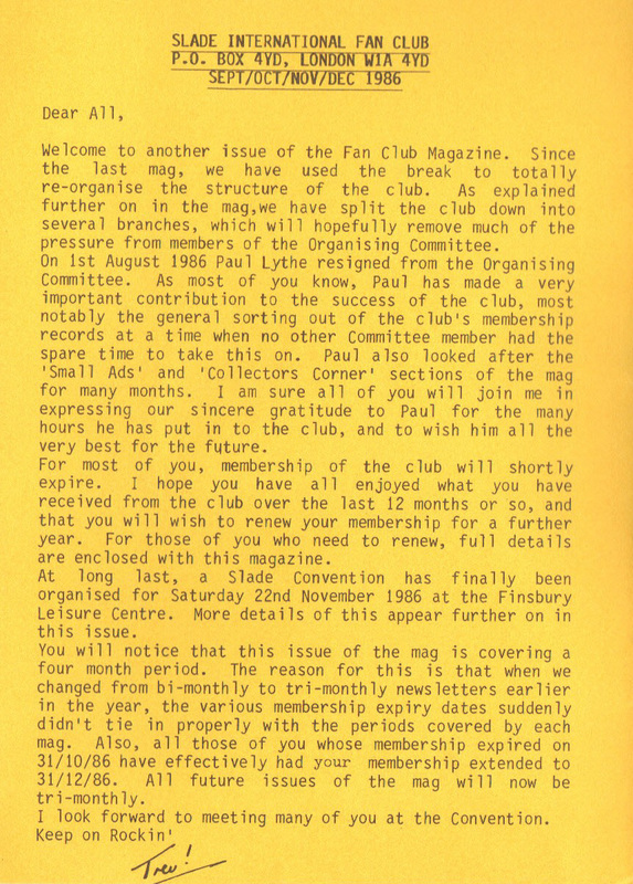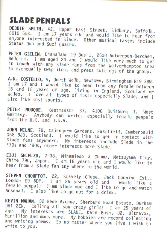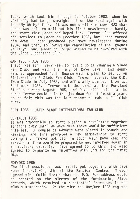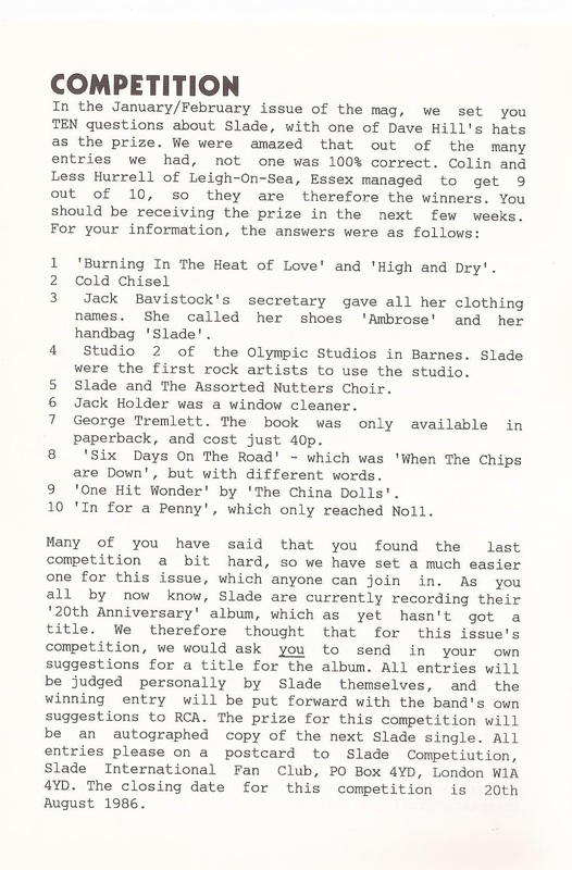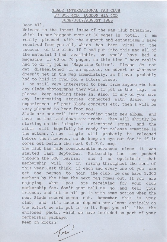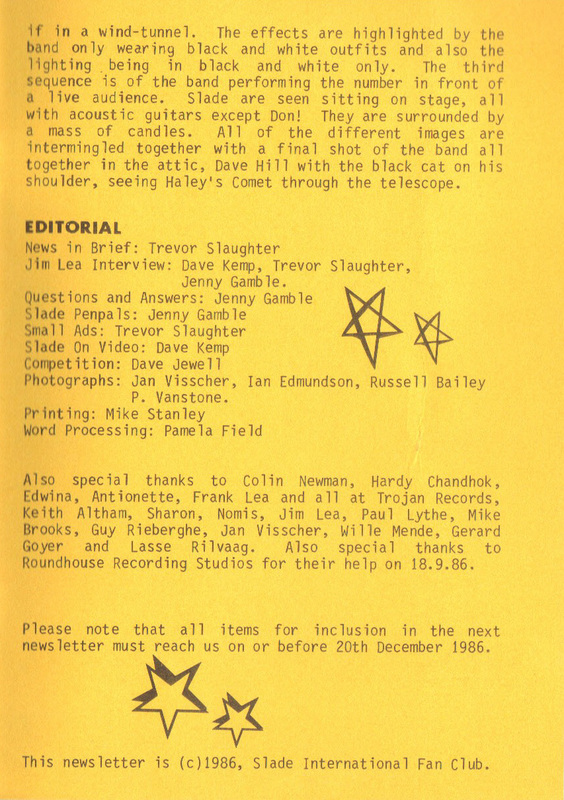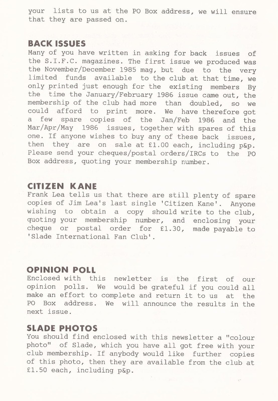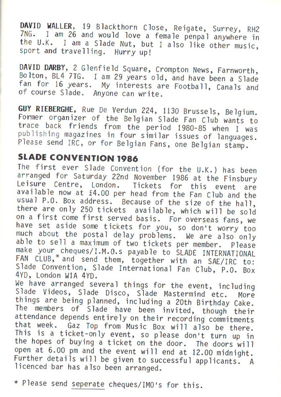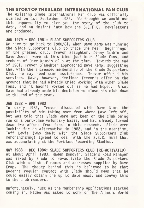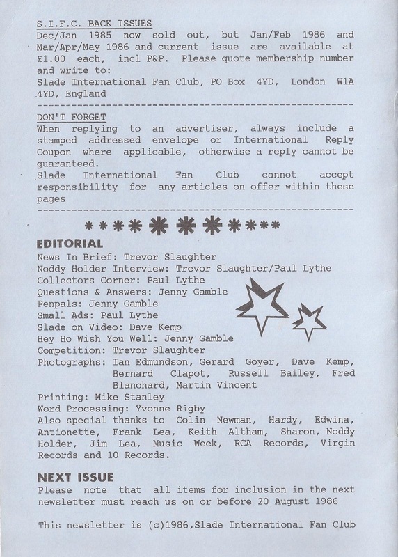 THE SLADE FAN CLUB NEWSLETTERS | 1986