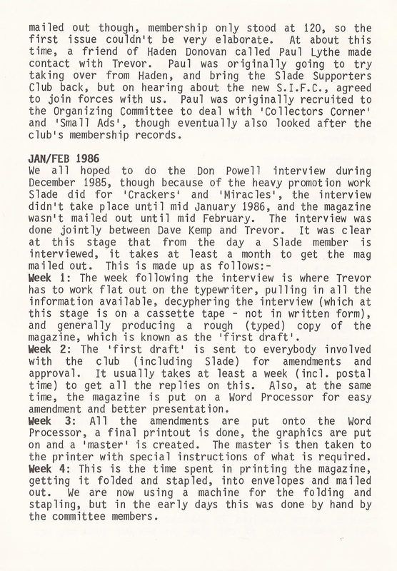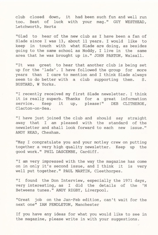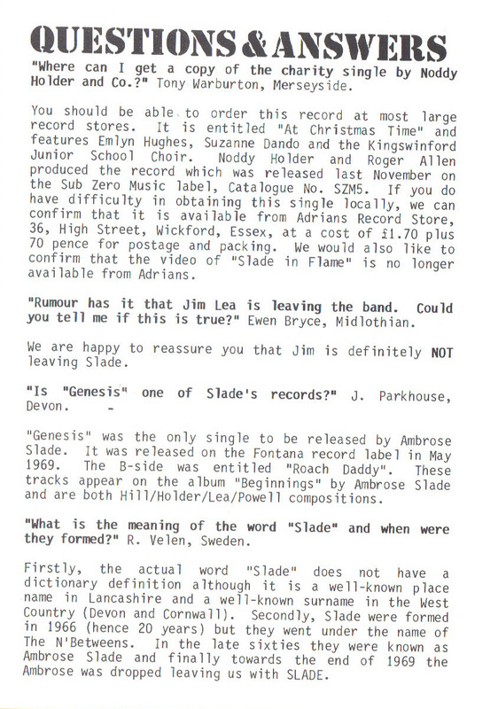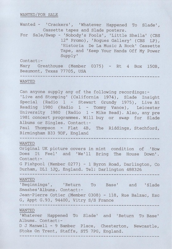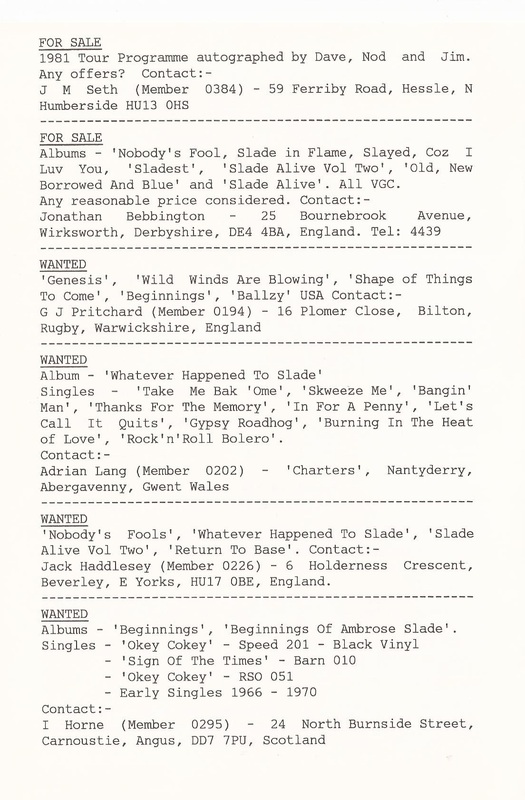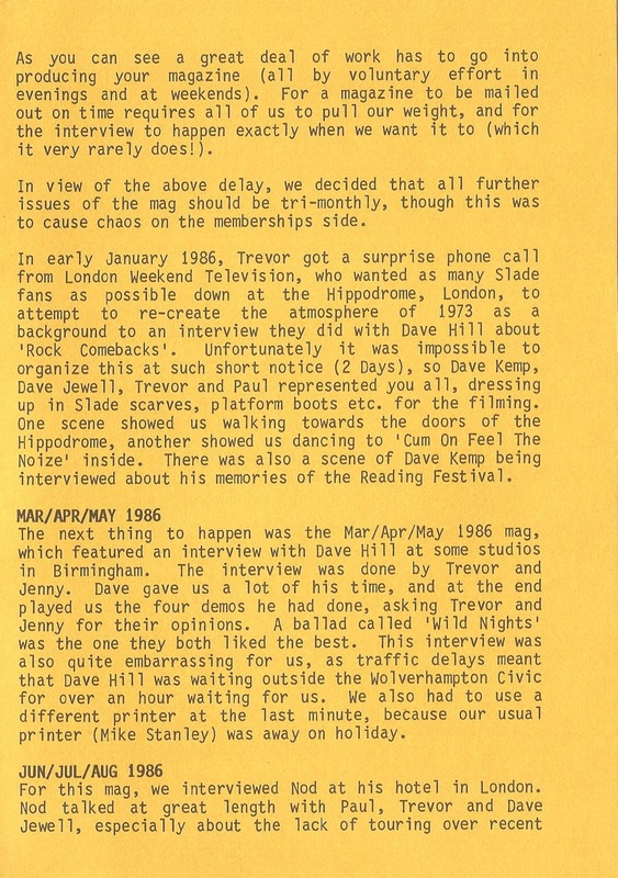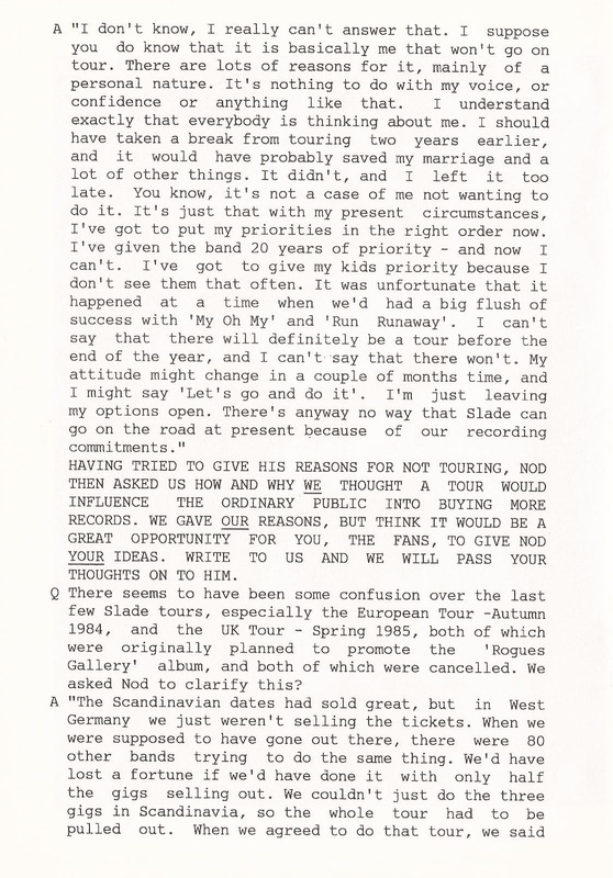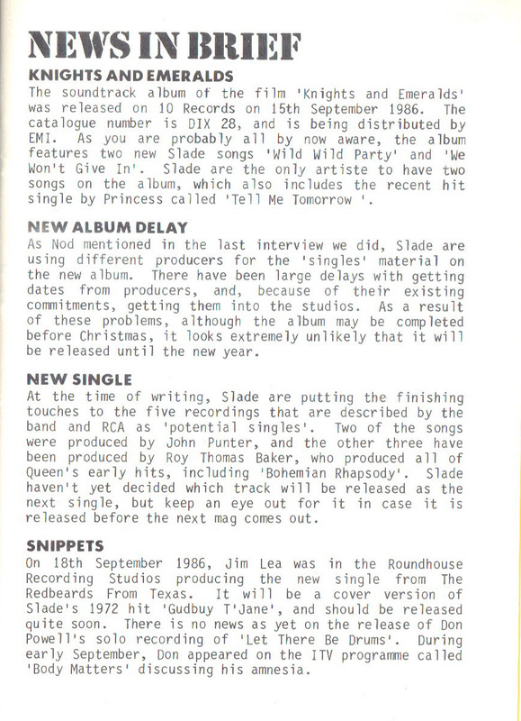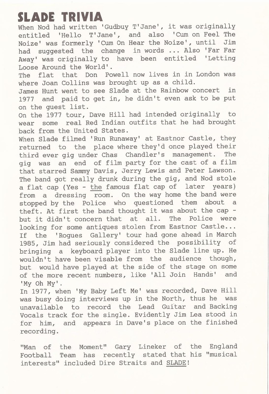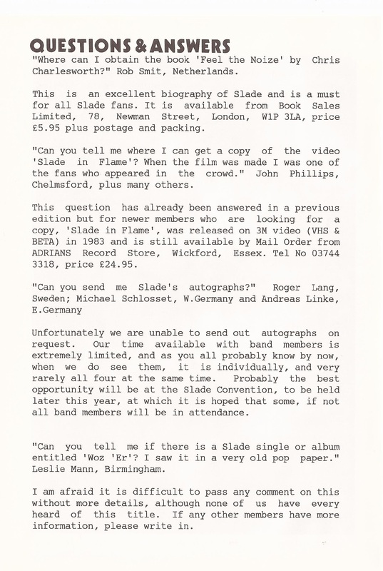 THE SLADE FAN CLUB NEWSLETTERS | 1986