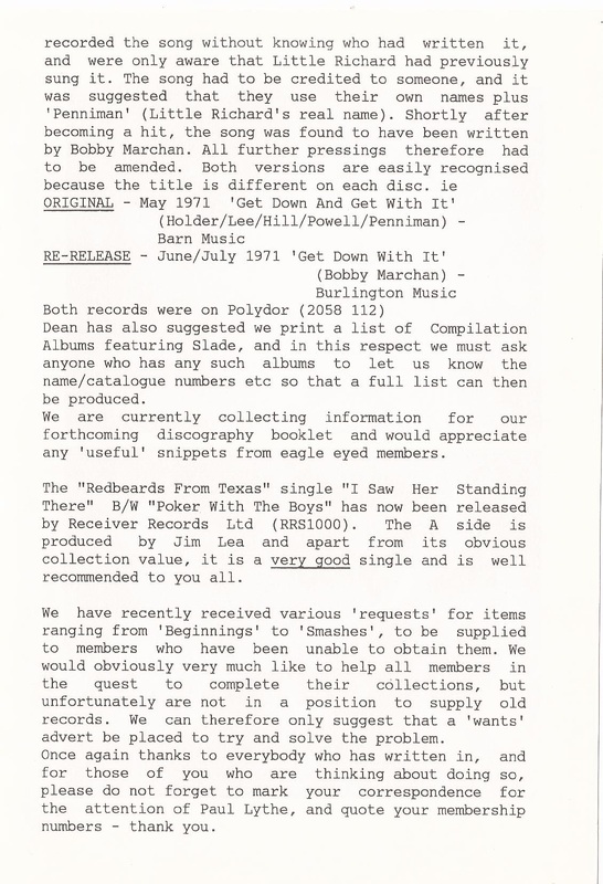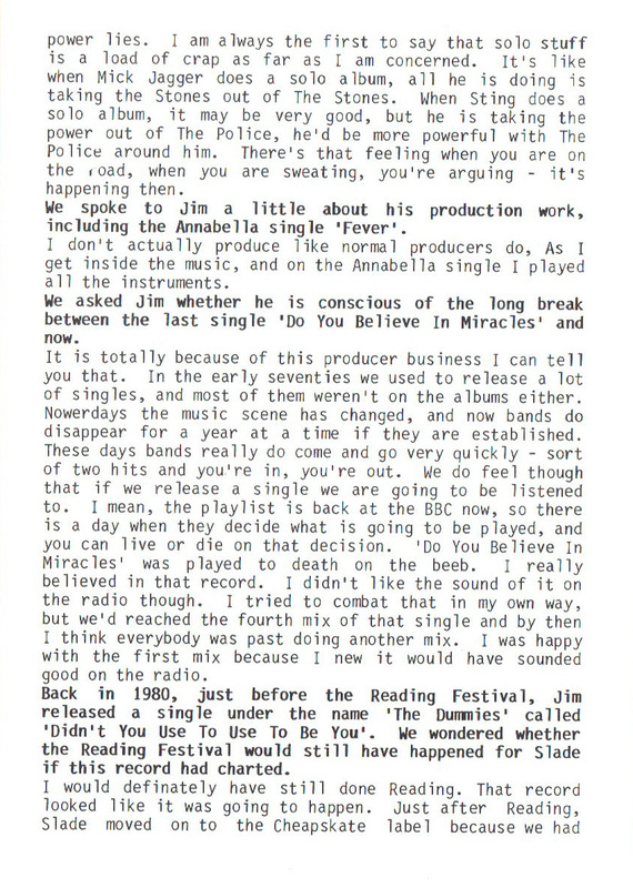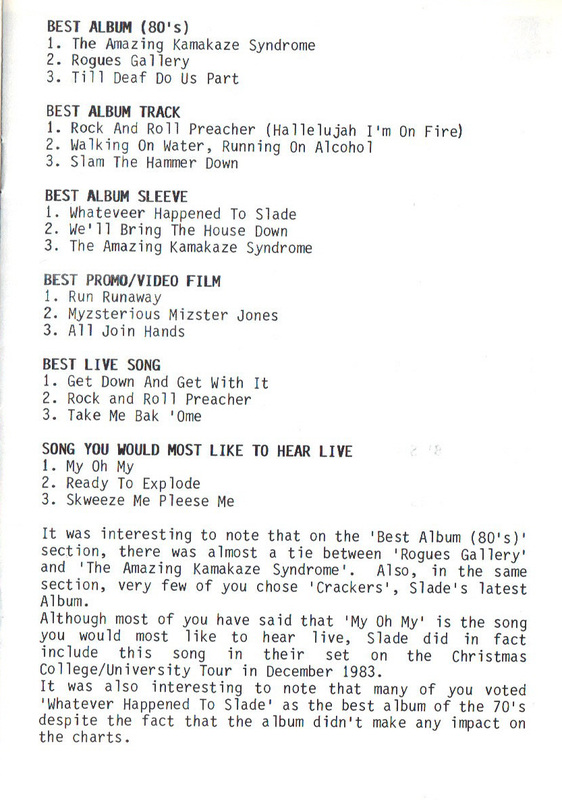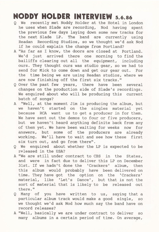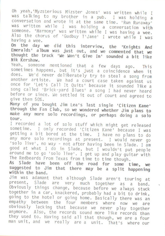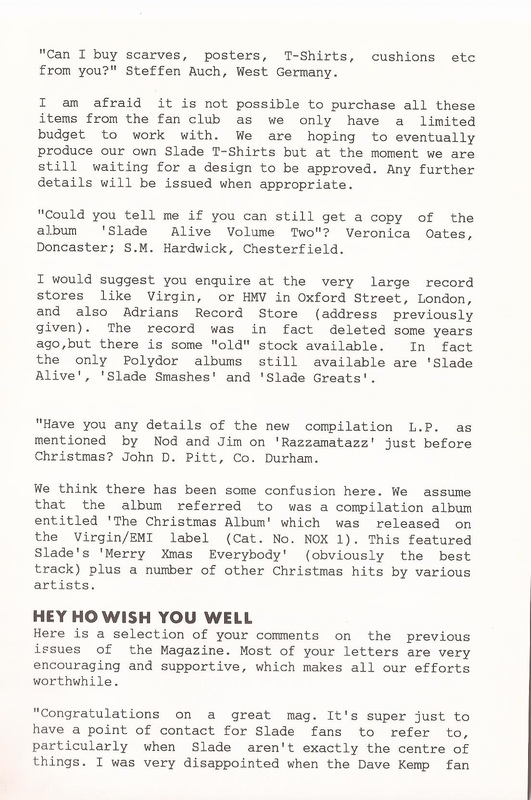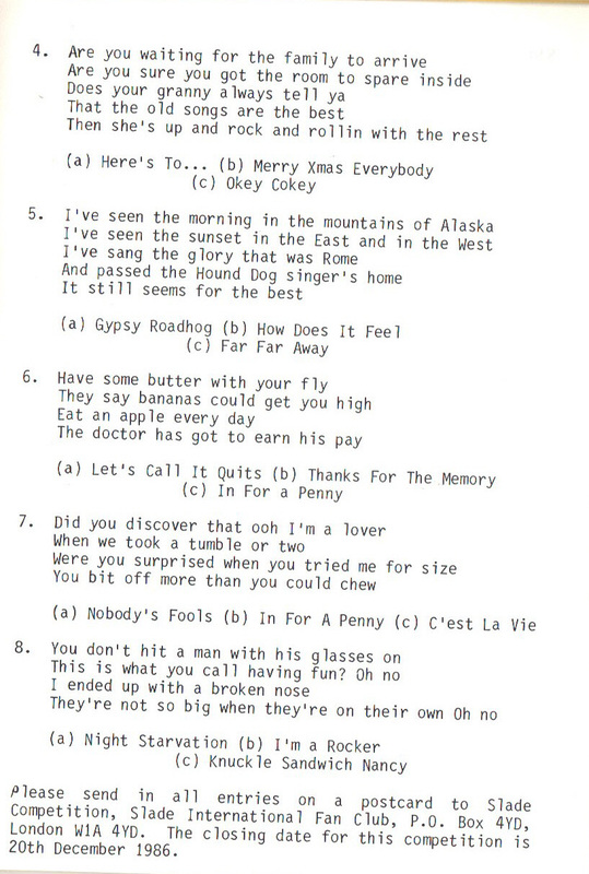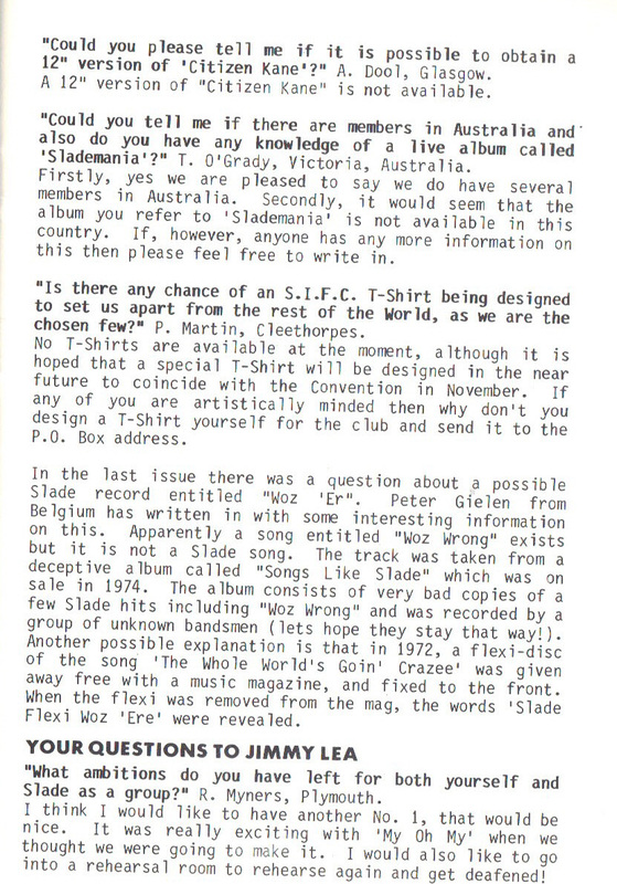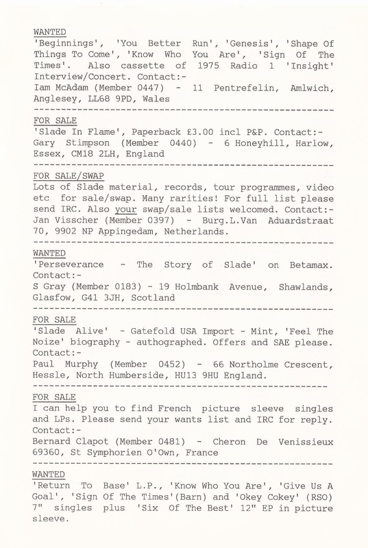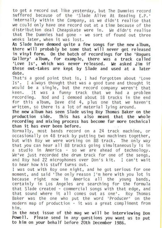THE SLADE FAN CLUB NEWSLETTERS | 1986