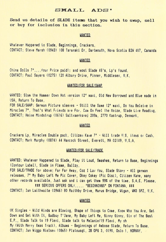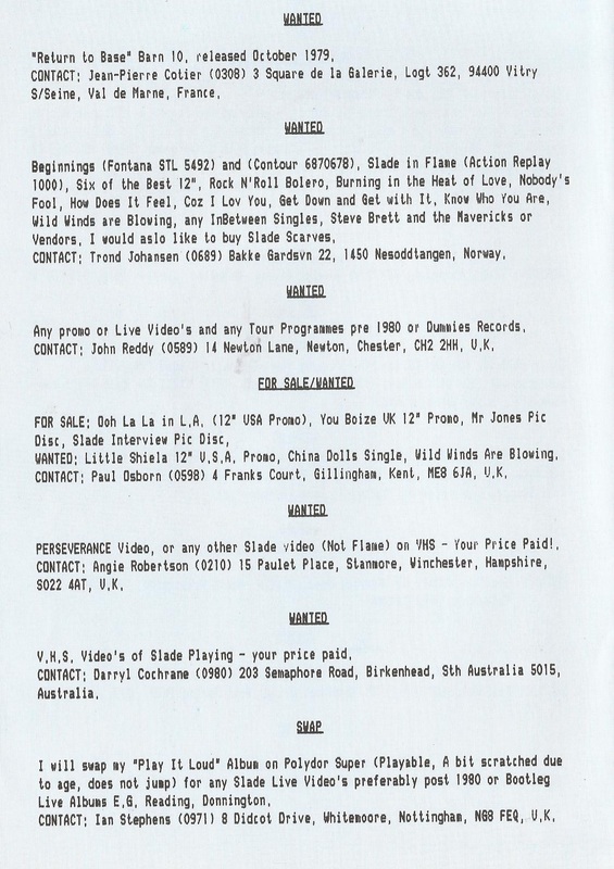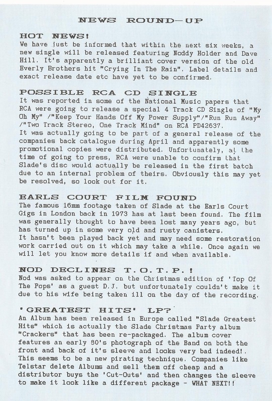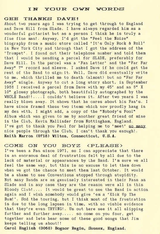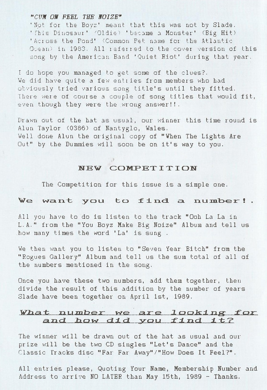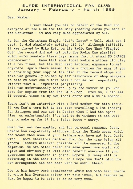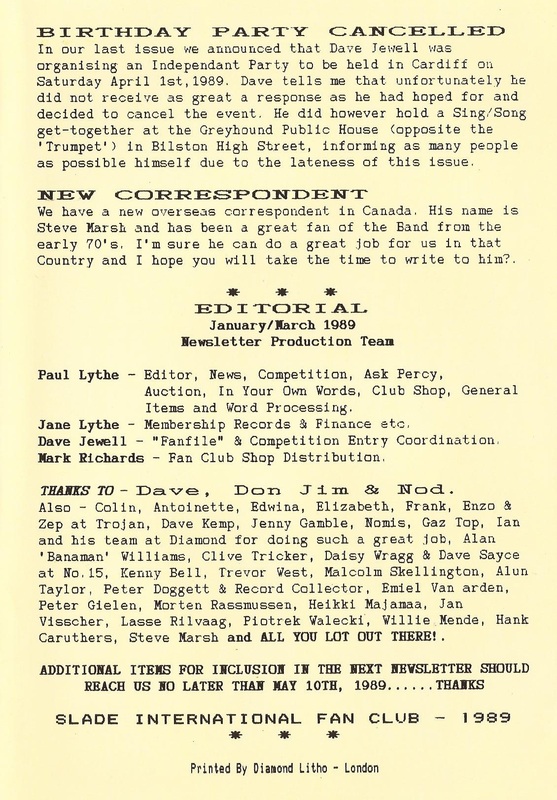 THE SLADE FAN CLUB NEWSLETTERS | 1989