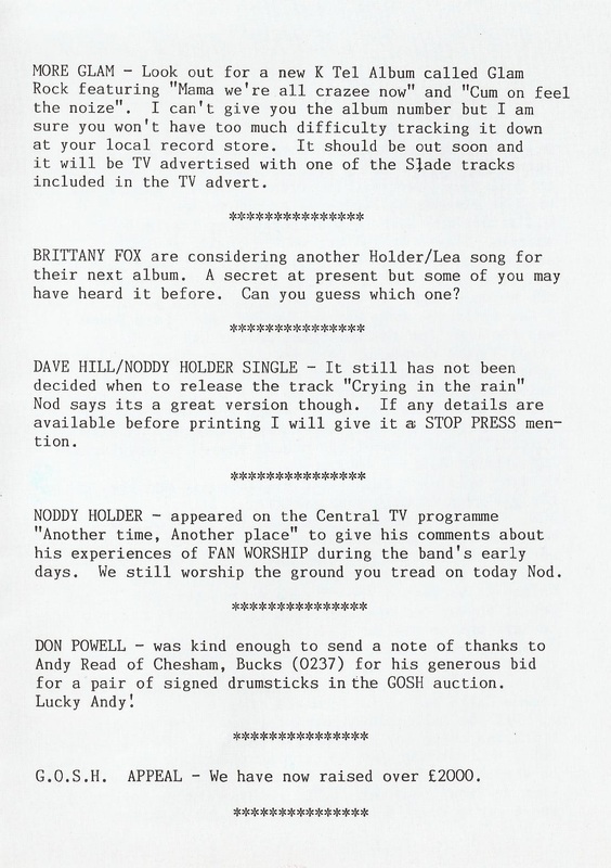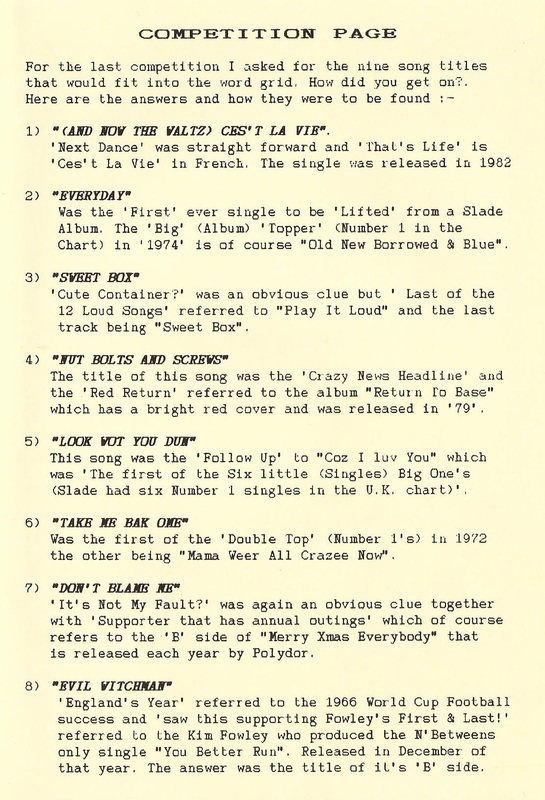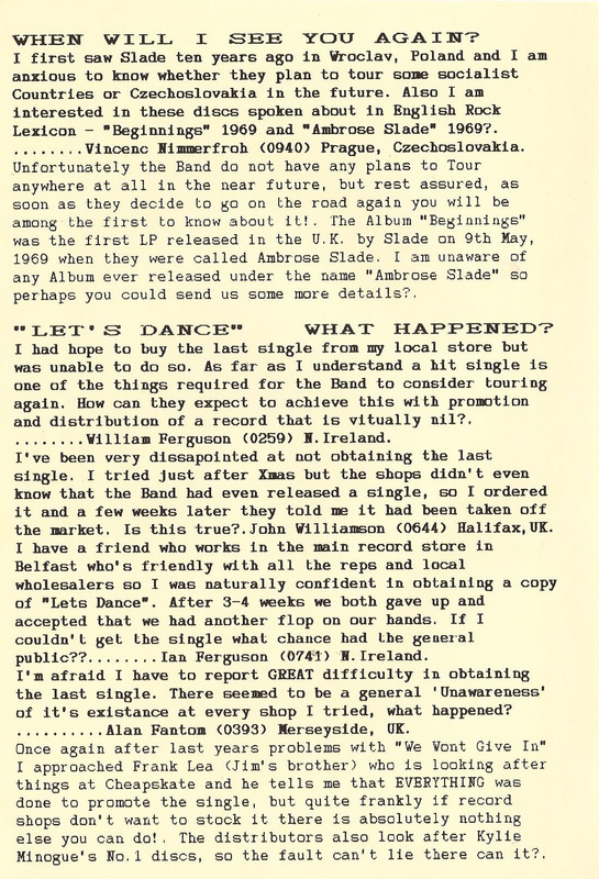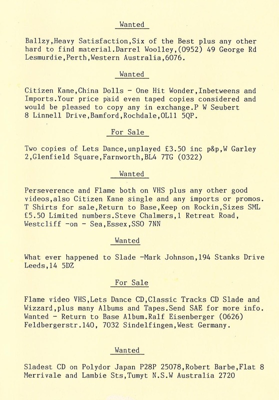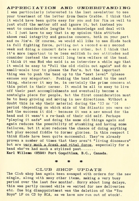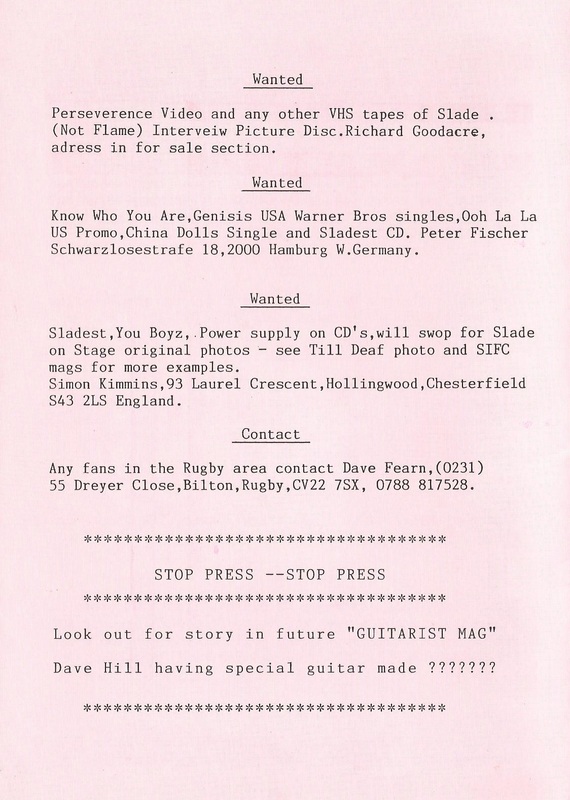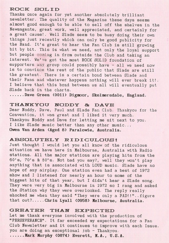 THE SLADE FAN CLUB NEWSLETTERS | 1989