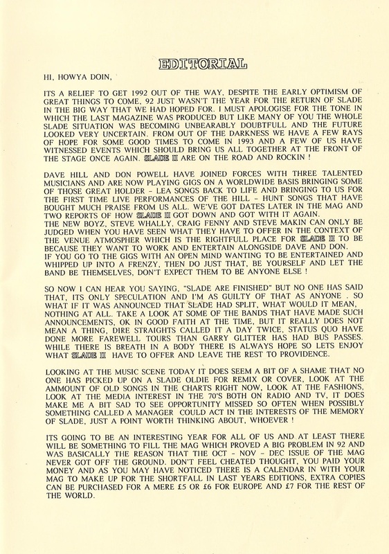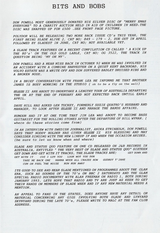 THE SLADE FAN CLUB NEWSLETTERS | 1993