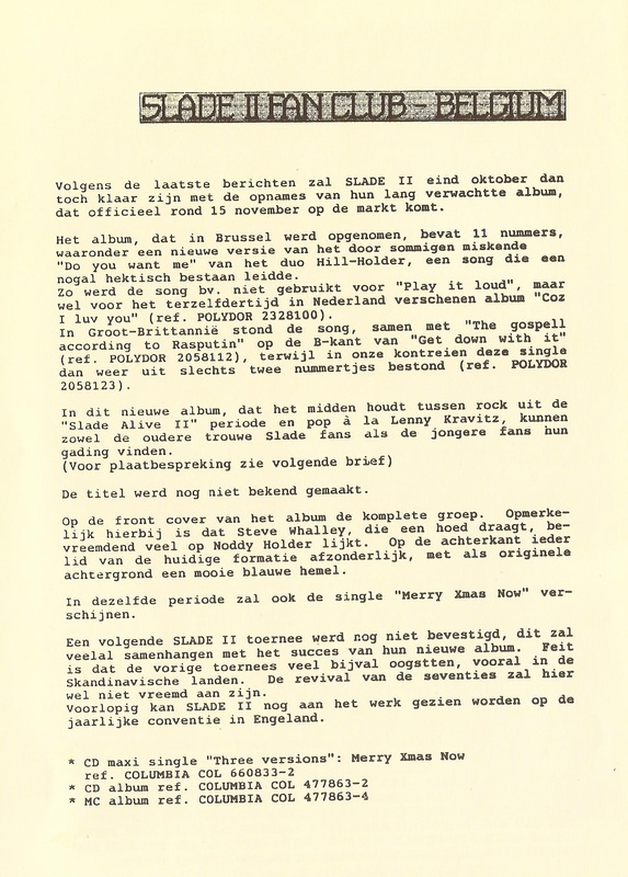 THE SLADE FAN CLUB NEWSLETTERS | 1994