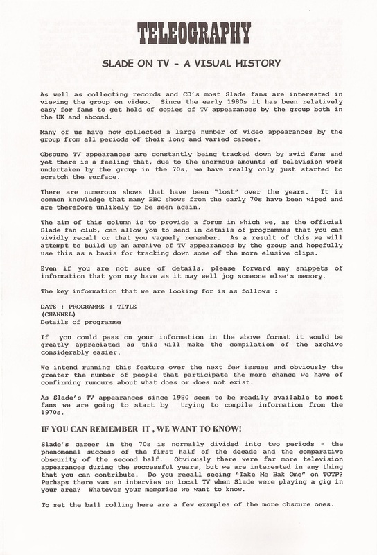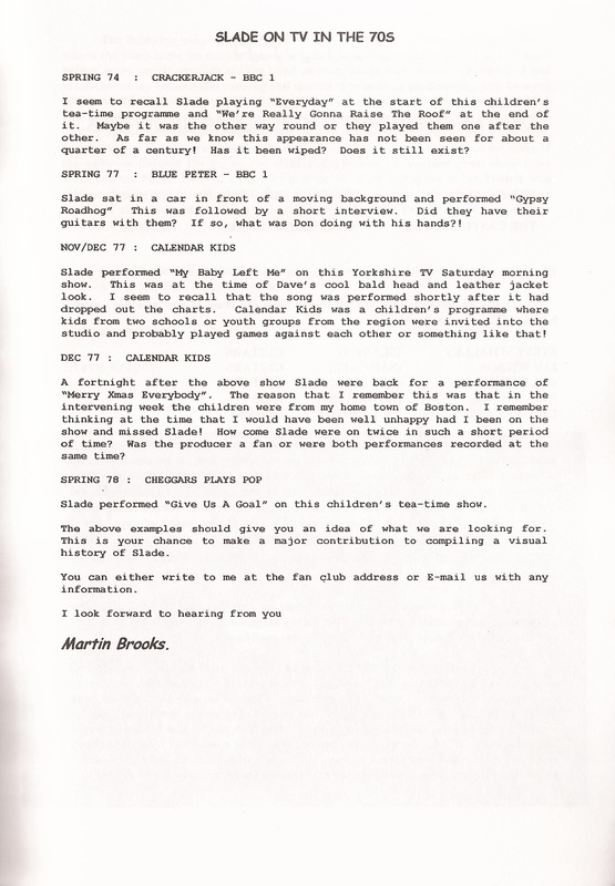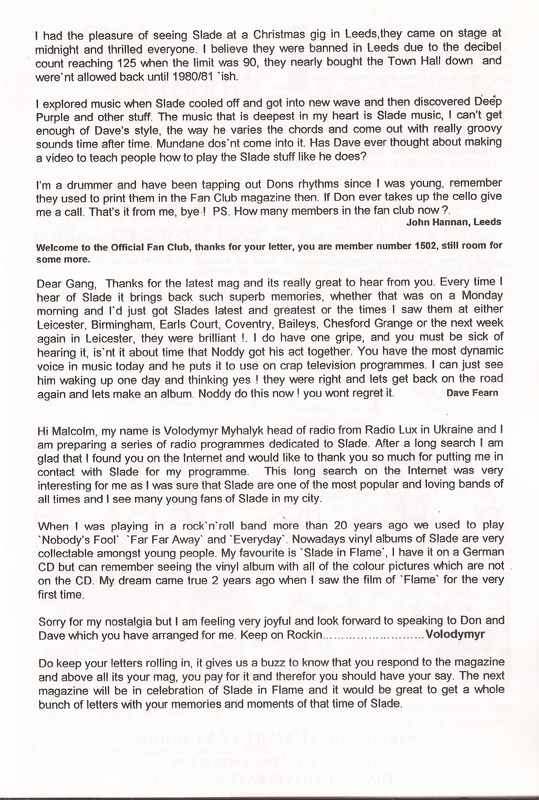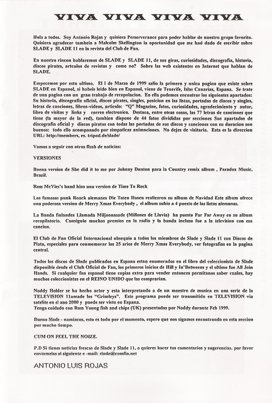THE SLADE FAN CLUB NEWSLETTERS | 1999