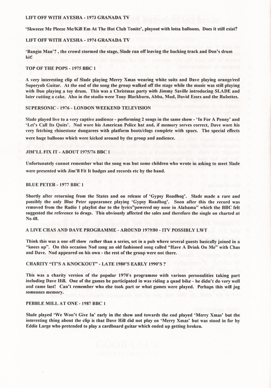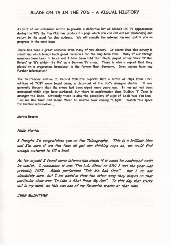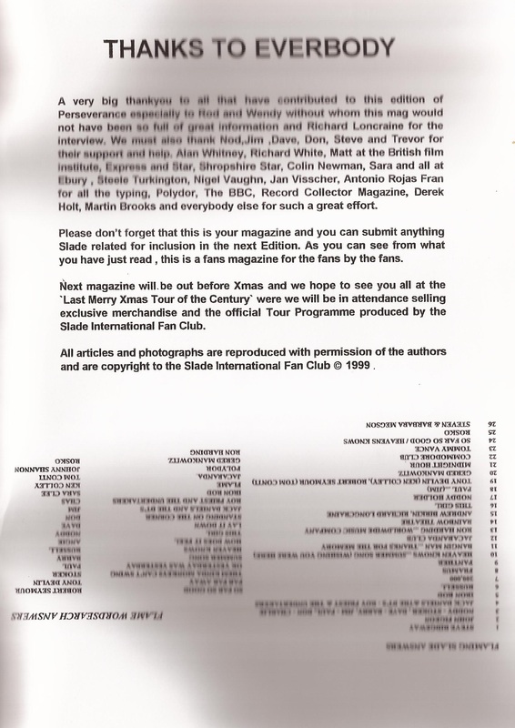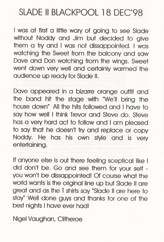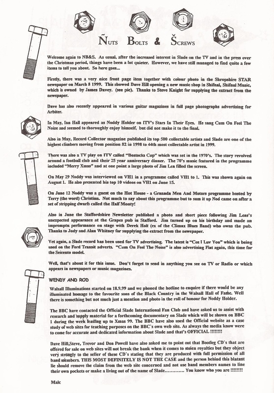 THE SLADE FAN CLUB NEWSLETTERS | 1999