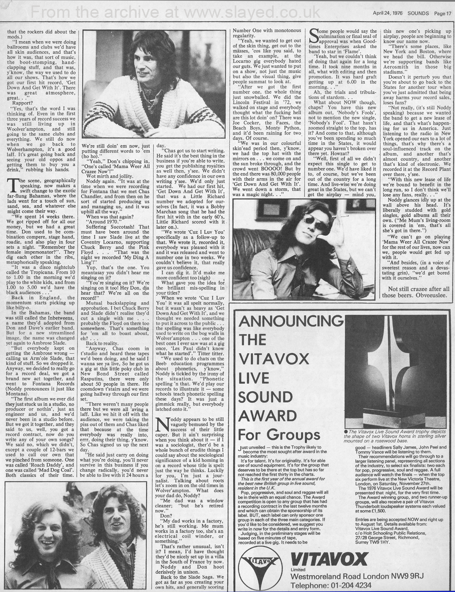 This interview took place in the dressing room at Liverpool with people wandering in and out, both before the set, when Slade do not drink out of professional morality, and after, when they do.
